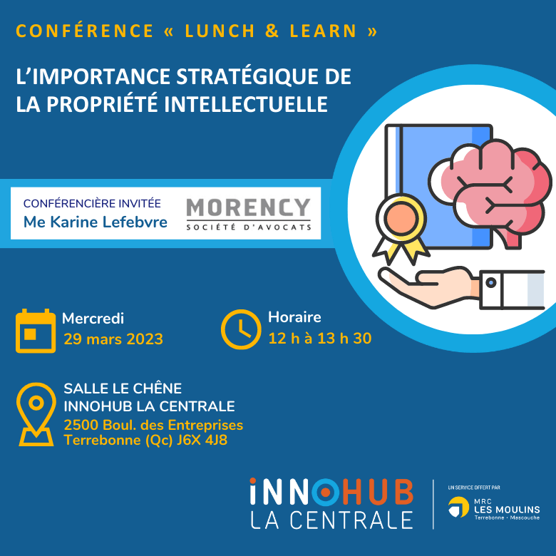 InnoHub La Centrale vous invite à une conférence de type « Learn & Lunch » où vous pourrez bénéficier d’échanges avec une avocate spécialisée en propriété intellectuelle.